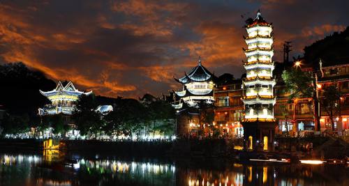 下午安排:乘車赴【芙蓉古鎮(zhèn)】(贈送門票、景區(qū)環(huán)保車和酉水畫廊已含),山水如畫,多情的酉水養(yǎng)育了世世代代的土家兒女,也造就了沿岸動人的風(fēng)光,酉水畫廊納含著芙蓉鎮(zhèn)的草木、山水、人兒,一道道美麗的彩虹是它編織的最美西蘭卡普。這里得酉水舟楫之便,上通川渝,下達(dá)洞庭,素有“楚蜀通津”之稱。因謝晉執(zhí)導(dǎo),劉曉慶、姜文主演的電影《芙蓉鎮(zhèn)》在此取景而出名,于是人們便把此地叫做芙蓉鎮(zhèn)。時代變遷,歷久彌新,更因其獨(dú)特的原始人文,靜謐山水成為新時代湖南旅游新寵。芙蓉古鎮(zhèn)大瀑布,酉水碼頭繁華依舊!乘車赴神秘湘西深處鳳凰古城,這里被譽(yù)為遠(yuǎn)去的家園,夢中的故鄉(xiāng),邂逅邊城的燈火闌珊,品味獨(dú)特的夢里苗疆。游覽被新西蘭著名作家路易艾黎稱贊為中國最美麗的小城--【鳳凰古城】,體驗(yàn)和感受鳳凰古城的九大精華:一座青山抱古城、一泓沱水繞城過、一條紅紅石板街、一道風(fēng)雨古城墻、一座雄偉古城樓、一個美麗彩虹橋、一排小橋吊腳樓、一批聞名世界的人、一個國家級非遺文化遺產(chǎn)!