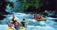 被譽(yù)為“中國(guó)生態(tài)第一漂”,位于東江湖最南端的黃草鎮(zhèn)境內(nèi),全程26千米。從龍王廟起漂點(diǎn)到燕子排終漂點(diǎn)整個(gè)落差75米,急灘108個(gè),漂流河道兩巖有保存比較完好的原始次森林,奇巖怪石林立,古樹遮天蔽日,老藤攀崖附壁,飛鳥跳躍枝頭。東江漂流以其灘多浪急落差大、水碧石怪魚奇怪、兩岸森林植被佳而 聞名,是國(guó)內(nèi)目前最具探險(xiǎn)的融歷險(xiǎn)、探幽、獵奇、拾趣為一體的漂流去處。