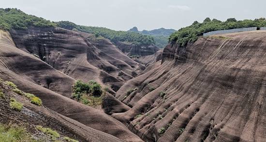 沿江兩巖“丹霞翠遙斷,巖石架空來(lái)”。一路順江飄流,只見(jiàn)丹峰林立,紅巖綠水,怪石幽洞,古木吐翠,竹海茫茫。一年四季綠葉、三季花香,繪成罕見(jiàn)的“四面青山列翠屏”、“草木花光盡是春”的奇妙丹霞地貌景觀。