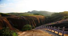 飛天山丹霞地貌區(qū)南西距郴州市25公里,面積48平方公里。屬紅巖丘陵地貌,地貌被大自然鬼斧神工雕刻成似人、似獸、似物、似禽,栩栩如生。主要丹霞地貌類(lèi)型為寨(堡),它們坐落有序,寨身陡峭,紅崖赤壁,寨頂綠樹(shù)當(dāng)華蓋。不少寨頂溶蝕成渾圓形洼坑。